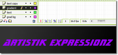 Step 1 : Create a new document in Flash and make at least three layers. Name them as 'Text copy', 'Gradient' and 'Text'. The content of Text and Text Copy would be the same. The bottom most layer i.e; the 'Text' layer will always be visible. We are going to mask a gradient animation on the 'Gradient' layer using the 'text copy' layer. Optionally you can create a layer for background. Preferably we suggest the background be dark and the glint gradient be light for best effects. Also set the speed of the movie to about 24 frames per second for a smooth animation.